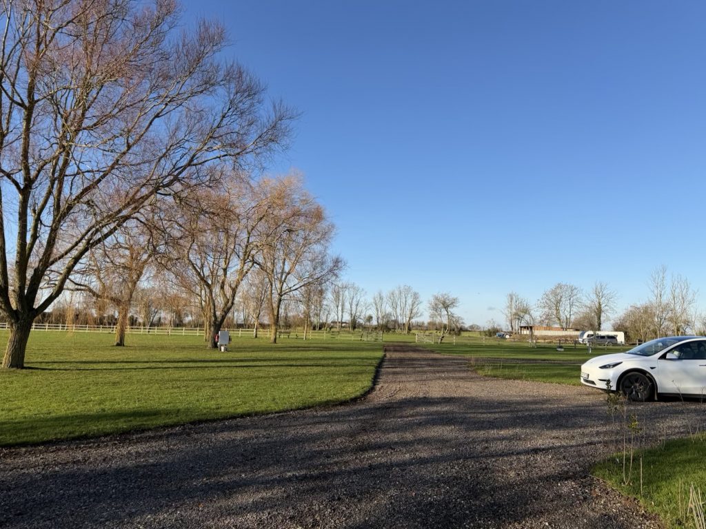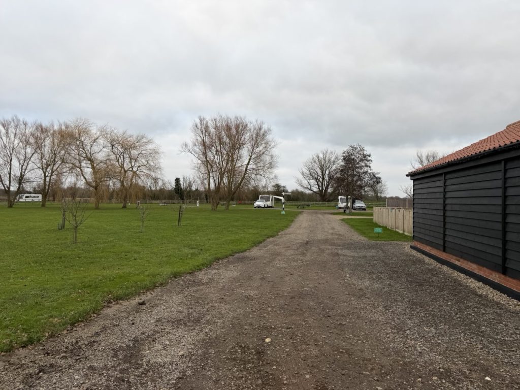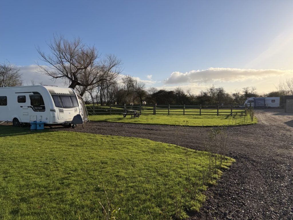 It’s a flat spacious site with 3 hard standing pitches and 2 grass pitches. All of which are fully serviced. meaning they have 16Amp Electric Hookup, Water and Waste on pitch.